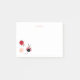 Cute stationary post it note for kids featuring illustration of smiling ladybugs and a pink flower.