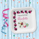 Personalize this cute birthday party dessert plate with your child's name. Designed with colorful whimsical flowers and dark pink ladybugs that any little girl would love. Created in part with graphics by Trina Clark purchased at digiscrapkits.com