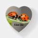 Cute, photo of two ladybugs on a leaf, is featured on this heart shaped paperweight. With message, "I Love You", makes a great gift for couples for Valentine's Day, Anniversaries, I Love You gifts and more!