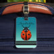 This design features a pattern of ladybugs on a blue/green gradient background.