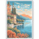 Lake Como vector art design. Lake Como, in Northern Italy’s Lombardy region, is an upscale resort area known for its dramatic scenery, set against the foothills of the Alps.