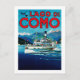 Vintage travel poster for Lake Como, Italy, showing a lake steamer with mountains in the background.