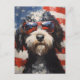 A Colorful Independence day design with a Lagotto Romagnolo with sunglasses