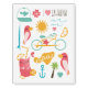 "Lahaina" Temporary tattoos with illustrations of parrots, waves, beach cruiser, a yummy drink, surfboard, maui hat and other selected items from the town Lahaina in Maui, Hawaii.