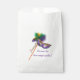 Package of 50 white paper favor bags with an image of a beautiful purple, green and gold satin mask on a stick with coordinating feathers and ribbons, and the text, “Laissez Les Bon Temps Rouler” (Let the Good Times Roll in French), in purple French script. See the entire Mardi Gras Favor Bag collection in the PARTY FAVORS section.