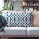 Lake Blue and White Trellis Pattern Lumbar Pillow