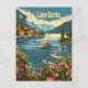 A picturesque and nostalgic depiction of Lake Garda, Italy's largest lake, known for its stunning natural beauty and Mediterranean charm. The design captures the lake's crystal-clear waters, surrounded by dramatic mountains, charming lakeside towns like Sirmione, and lush greenery. Rendered in a vintage style, the artwork evokes the serene and inviting atmosphere of Lake Garda, inviting viewers to experience its scenic splendor and tranquil ambiance.
