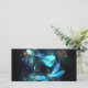Two transparent, luminous, turquoise, artistically drawn dragonflies on night background with luminescent lake algae and fireflies. Glowing dragonfly.