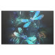 Two transparent, luminous, turquoise, artistically drawn dragonflies on night background with luminescent lake algae and fireflies. Glowing dragonfly.