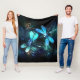 Two transparent, luminous, turquoise, artistically drawn dragonflies on night background with luminescent lake algae and fireflies. Glowing dragonfly.