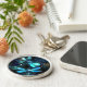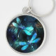 Two transparent, luminous, turquoise, artistically drawn dragonflies on night background with luminescent lake algae and fireflies. Glowing dragonfly.