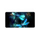 Two transparent, luminous, turquoise, artistically drawn dragonflies on night background with luminescent lake algae and fireflies. Glowing dragonfly.