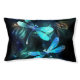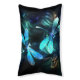 Two transparent, luminous, turquoise, artistically drawn dragonflies on night background with luminescent lake algae and fireflies. Glowing dragonfly.