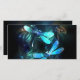 Two transparent, luminous, turquoise, artistically drawn dragonflies on night background with luminescent lake algae and fireflies. Glowing dragonfly.
