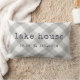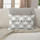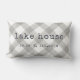 Show your love for your lakeside abode with our custom coordinates lumbar throw pillow. Shown with "lake house" and the coordinates beneath, our soft gray and white buffalo plaid pillow features your lake house latitude and longitude in navy blue vintage typewriter lettering. Search for your coordinates on any mapping site and enter them in the template field provided. Example coordinates shown for Lake Tahoe. Makes a unique custom housewarming gift for new homeowners and a perfect addition to your lakeside home.
