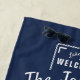 Add custom style to your weekend home with our lake house beach towel. The navy blue and white towel is completely personalizable, perfect to take pictures for Instagram. Start personalizing with Lake or Beach name, following by Welcome to " The Family Name" and end with your type of house and your year established. Your family logo contains canoe paddles and a nautical rope frame
