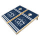 Elevate your family gatherings at the lake with our stylish cornhole set. It boasts a distinctive navy blue backdrop that can be customized to any shade, complete with charming boat oars and an anchor design, and the heartwarming phrase 'life is better at the lake.' The best part? You can personalize it with your team names and the year your squad was established. Perfect for those who believe in making each moment count and each game unforgettable.