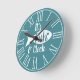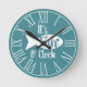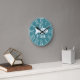 Cute white fish silhouette wall clock featuring a coastal blue green color with white numerals and the phrase "It's fish o' clock". This clock is great for a beach house, lake house, or any nautical style!