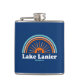 Adventure seekers visit the Lake Lanier area for paddling, hiking, fishing, sailing, cycling, camping, hiking, and climbing . This retro design has a rainbow and canoe.