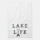 Our custom kitchen towel adorned with with the words "Lake Life" in black and white. View our full line of products in our Zazzle store.