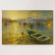 Immerse yourself in the "Painter of Light" with this stunning Turner-inspired puzzle of Lake Lucerne, Switzerland. This scene captures traditional wooden boats bobbing on the shimmering gold waters as the sun crests over the distant Swiss Alps.