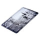 A photograph showing just a glimpse of the mountain lake through snow-covered fir trees. This landscape picture is digitally manipulated to look like a watercolor.