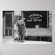 Old photo of man holding fish in front of post office, Lake Ozark, Missouri. Photo taken in 1936 by Resettlement Administration photographer Carl Mydans.