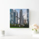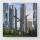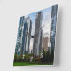 Wall clock featuring an urban landscape scene of a peaceful evening with some skyscrapers in downtown Chicago Illinois from Lake Shore East Park. This beautiful park is 4.6 acres and is located in the Chicago Loop.