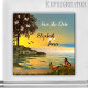 A romantic magnet featuring a coastal landscape with a blossoming tree and colorful butterflies at sunset. Beautiful as a Save the Date magnet and customizable for other situations.