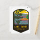 A vintage travel badge design of Emerald Bay, Lake Tahoe, a large freshwater lake in the Sierra Nevada Mountains located in California and Nevada.