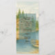 This program and menu design captures the charm of Lake Tahoe with pine trees, a serene lake, and rustic lodge elements. Perfect for alpine destination wedding receptions. Easily customizable to suit your event. AI-assisted watercolor textures enhance its beauty. Social media referrals may generate a small commission at no extra cost to you.