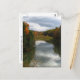 This postcard features Lake Treman which is situated at the top of Buttermilk Falls State Park, just south of Ithaca in the Finger Lakes Region of New York state. The water drops more than 600 feet over 10 separate waterfalls and eventually empties into Cayuga Lake. On this lovely autumn day, clouds and sun alternated to create a fascinating pattern in the sky which was reflected in the water. The woods surrounding the lake were ablaze with fall foliage colors of orange, yellow, red, gold and green. Golden shrubbery framed the foreground.