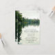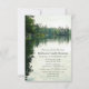 This family reunion at the lake invitation card for a weekend-long camping (or glamping!) celebration features distant evergreens and rock structures reflected on the surface of a calm, lightly rippled body of water under an overcast sky from the point of view of a paddler sitting in a kayak on the water | image was created from my own personal kayaking photograph | Part of katzdzynes’ Rustic Lakeside family reunion / business retreat collection >>> https://www.zazzle.com/collections/119413093835947250