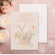 "Happy Easter" greeting card with a little lamb in an Easter basket surrounded by soft peach and pink watercolor flowers. Text, font, font size, and color are completely customizable, so this card can be designed to perfectly suit your needs.