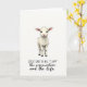This card features a small white lamb centered near the top, softly shaded so its coat looks gently textured, with pale pink inside the ears and a rosy nose. Its large dark eyes face forward with a calm, tender look that feels like a quiet moment shared between close friends. The background stays bright white and open, giving the little animal plenty of space to stand out, like a peaceful pause on Easter morning 🌷. Below the lamb, the message is arranged in two styles, with a simple, easy-to-read line first and a flowing cursive-style line for the main phrase. The words are printed in crisp black, centered on the page, with the larger, flowing line drawing the eye. The layout feels balanced and uncluttered, letting the image and words sit together without crowding 🐇. The lamb’s rounded face, pink accents, and the dark lettering sit against the wide white background with generous margins all around.