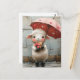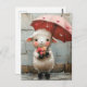 AI generated art of an adorable lamb standing in the rain with an umbrella and a arm full of flowers