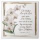 Inspirational scripture ceramic tile depicts a simple watercolor floral design with elegant white orchids and a gold frame. It features Bible Verse Lamentations 3:22-23, "The steadfast Love of the Lord never ceases; His Mercies never come to an end; they are new every morning; Great is Your Faithfulness."