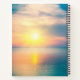 Inspirational quote scripture notebook, journal depicts a beautiful blue, pink and yellow ocean sunrise. It features a portion of Bible Verse Lamentations 3:23, "His mercies are new every morning."