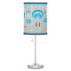 The lamp looks exactly like the picture, bright and colorful. The lamp shade is plastic not what I expected, however I love it! The printing is clear and the name can easily be read.