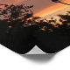 Silhouette of oak leaves, a lamp post, and a bird in flight...against a beautiful pink sunset.