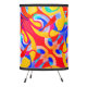 LAMPARA BASE TRIPODE DE ACERO CON DISENO ABSTRACTO MULTICOLOR , HOMEDECOR ,HOSPITALITYPROJECTS ,RESTOS ,BRIDAL GIFTS