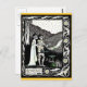 Black and white artwork with color highlights. Lancelot holding Excalibur as the witch Hellawes speaks with him. Fine art by English gothic artist Aubrey Beardsley.