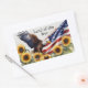 Land of the free because of the brave stickers for the 4th of July. Design with an eagle, American flag, and sunflowers.