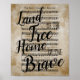 "Land of the Free,Home of the Brave" is written in script over sheet music for the hmyn, Star-Spangled Banner. The words of Francis Scott Key read: O, say can you see by the dawn's early light what so proudly we hailed at the twilight's last gleaming? Whose broad stripes and bright stars, Thru the perilous fight, O'er the ramparts we watched were so gallantly streaming? And the rockets' red glare, the bombs bursting in air, Gave proof thru the night that our flag was still there, O say, does that star-spangled banner yet wave, O'er the land of the free and the home of the brave? The antique look gives this poster a vintage feel.