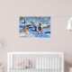 A photographic print of a handsome Mallard male making an elegant landing over a mostly frozen river in one of Ontario's coldest Winters ever recorded.