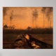 Landscape at Dusk by Vincent van Gogh is a vintage fine art post impressionism landscape nature painting. A field with a few trees at sunset in deep muted autumn colors.