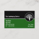Lawn care business cards with a great tree silhouette and modern design you can customize online. Perfect for business card themes related to lawn care landscaping or tree trimming.