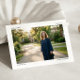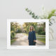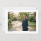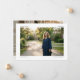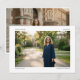 This graduation announcement features a large landscape photo with your name and "Graduate" in the top corners and your class year and school in the bottom corners — a clean, editorial layout that puts the photo front and center. The back has a second photo.