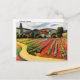 A postcard with the painting, Landscape in Tegernsee, by August Macke (1887-1914). He was a German Expressionist artist who died during WWI and had been a leading member of the group Der Blaue Reiter. A dirt path through a warmly lit country landscape of farming fields and houses, with a steeple in the background. Tegernsee is a village in Bavaria, Germany.