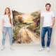 In this captivating watercolor painting titled "Landscape of Sunset Country Road," the artist transports the viewer to a serene countryside setting aglow with the warm hues of twilight. The scene depicts a narrow country road winding gracefully through undulating fields and rolling hills. The sky is a tapestry of yellow, orange, and brown as the sun ready to sets beyond the horizon, casting a golden glow over the landscape.